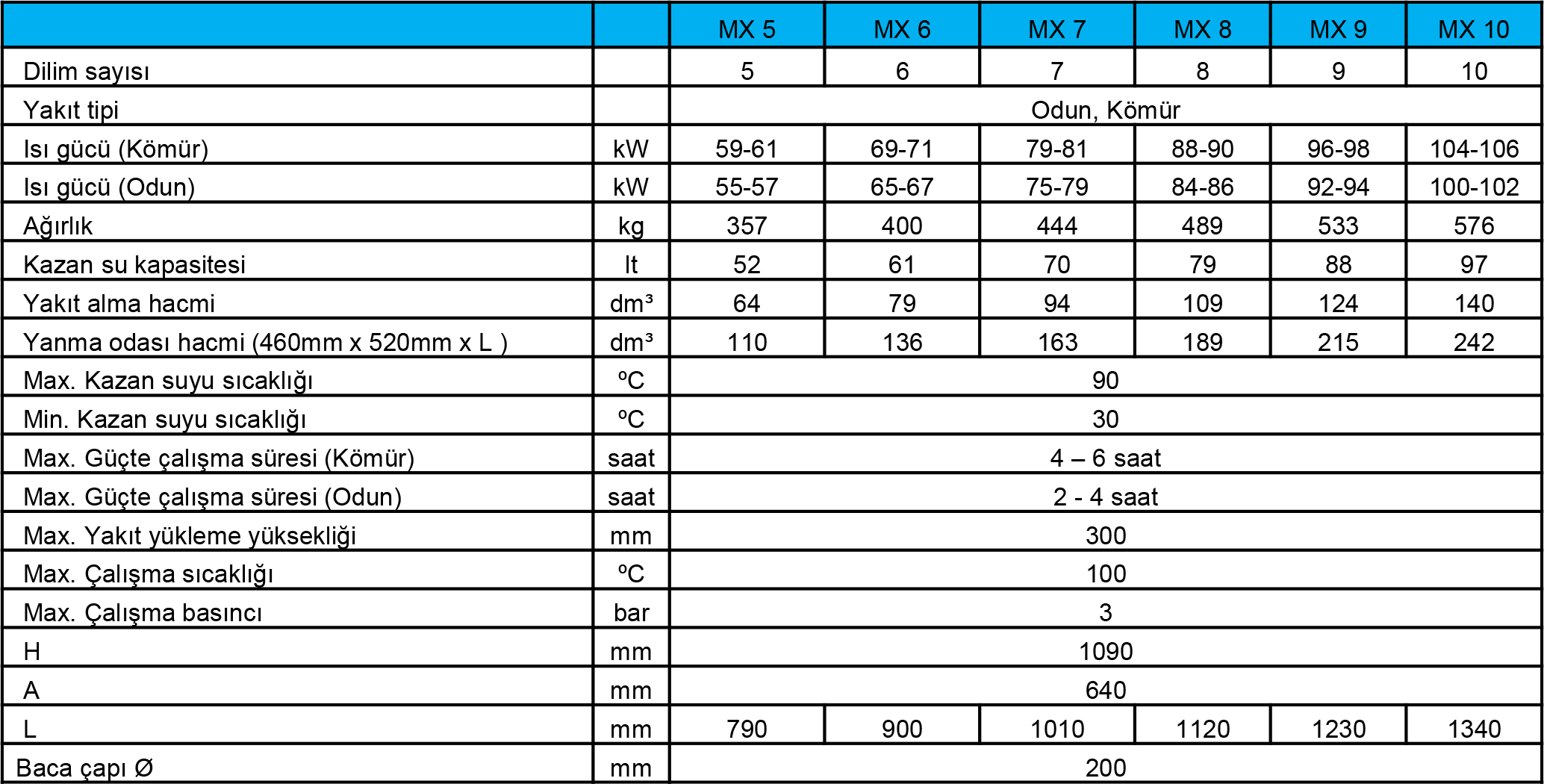 Maxitech F - Katı Yakıt Kazanı - Teknik Özellik Tablosu