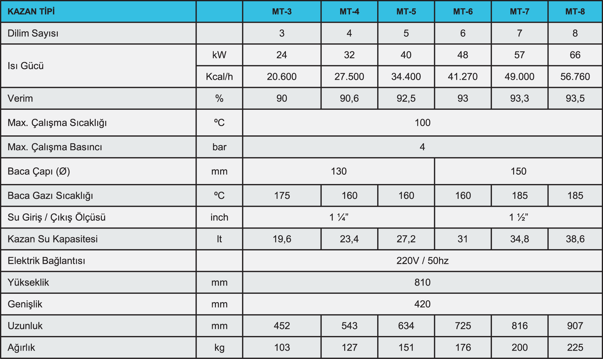 MT Kazan - Sıvı Yakıtlı Kazan - Teknik Özellik Tablosu