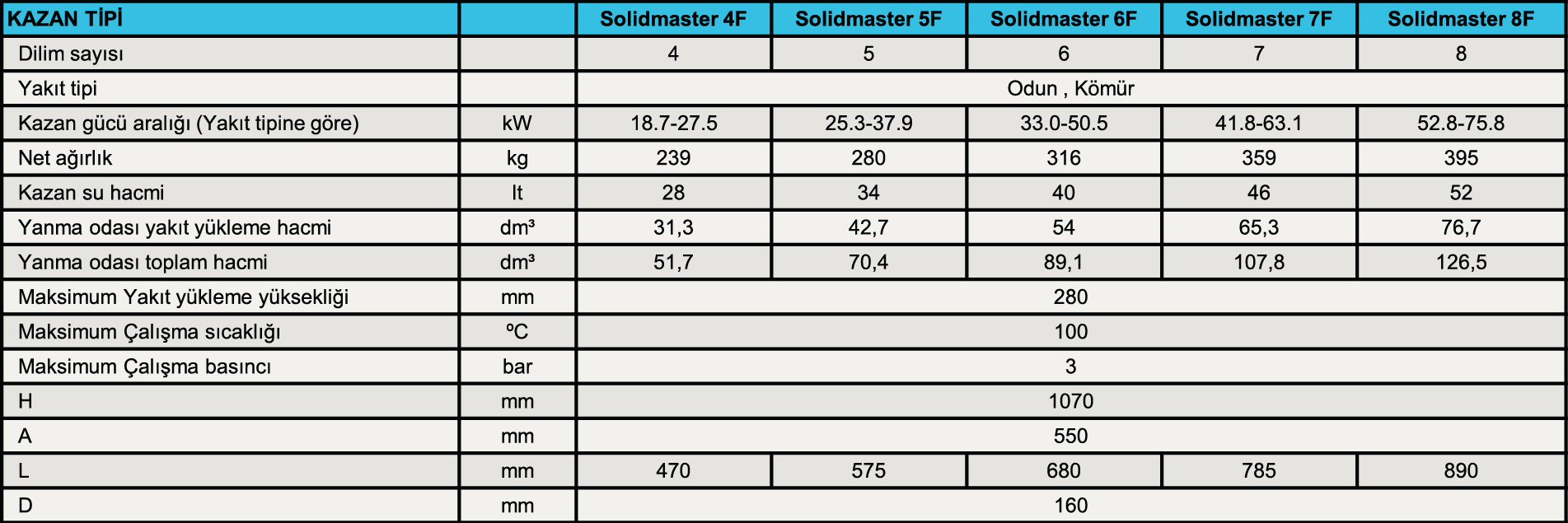 Solidmaster F - Katı Yakıt Kazanı - Teknik Özellik Tablosu
